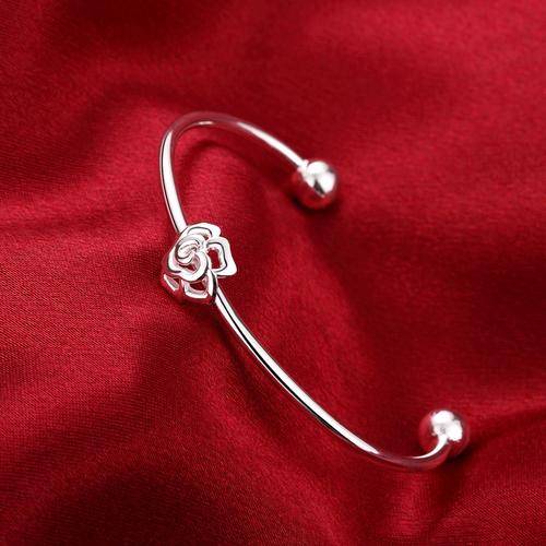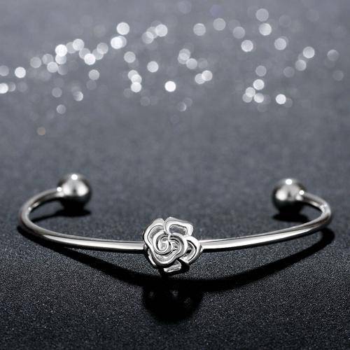 New 925 Sterling silver filled Elegant ladies cuff bangle with flower design detail