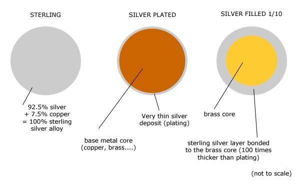 It is a layer of 925 sterling silver bonded to jewellers brass over 100 times thicker than traditional plating. It will not wear down easily and will last for years if proper care is taken. See picture below for a basic description. Our pieces are also Nickel free and will not cause any allergies or leave marks.