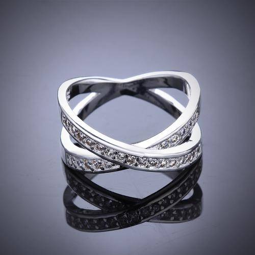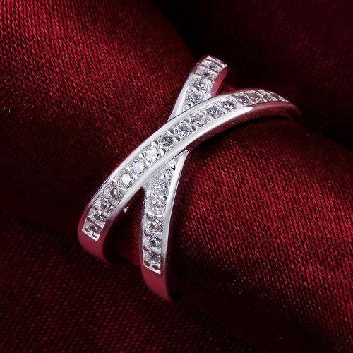 New 925 sterling silver filled Ladies crossover ring with AAA genuine Austrian crystals