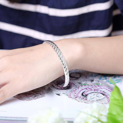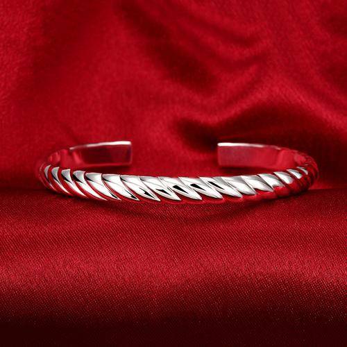 New 925 Sterling silver filled Ladies cuff Bangle with grooved detail