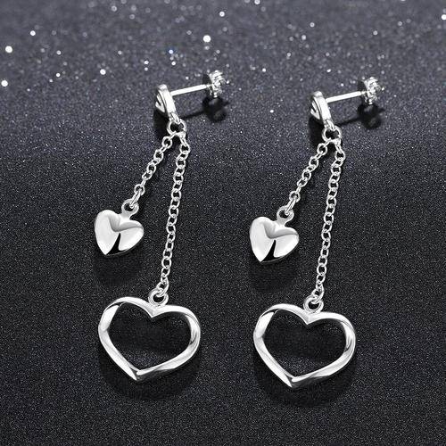 New 925 Sterling silver filled Ladies dangle double Heart Earrings