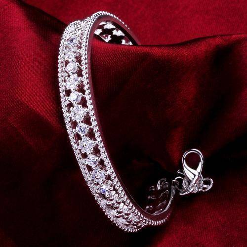 New 925 Sterling silver filled Ladies Delicate cuff bangle adorned with AAA genuine crystals