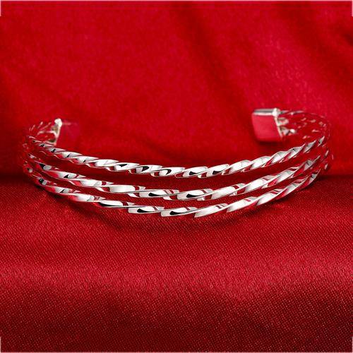 New 925 Sterling silver filled Ladies tri row cuff bangle with twist detail