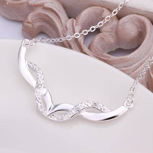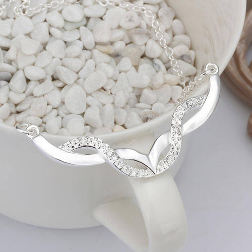 New 925 Sterling silver filled Ladies V design drapped necklace \ Pendant with Austrian crystals