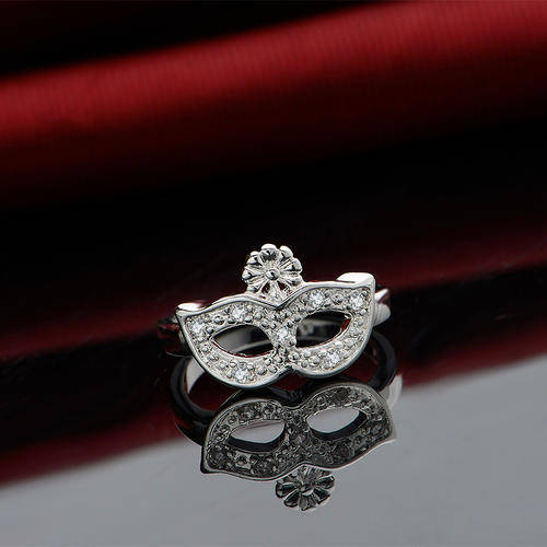 New 925 sterling silver filled stamped Cute ballroom mask ring with Genuine Austrian crystals