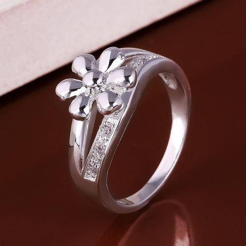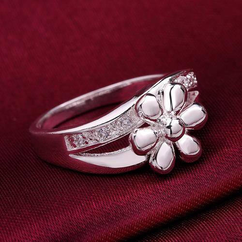 New 925 sterling silver filled stamped Flower detail ring with Genuine Austrian Crystals