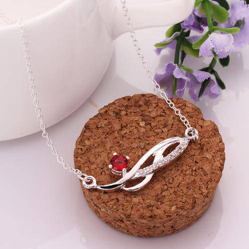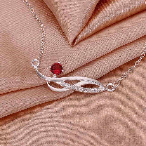 New 925 sterling silver filled stamped ladies drapped necklace with red Genuine Austrian crystal