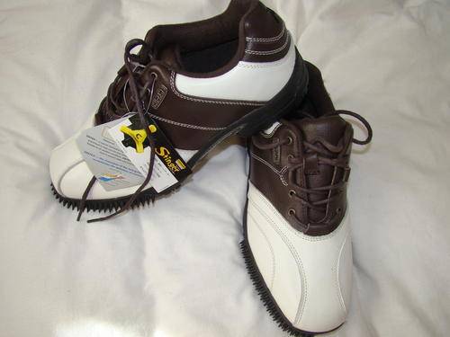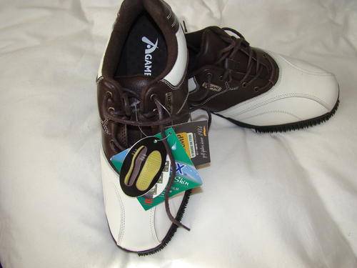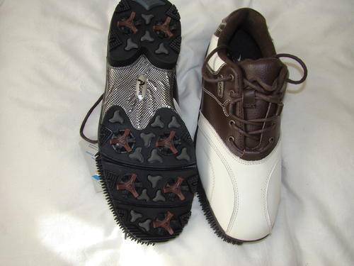 This is a new pair of A-Game MENS leather golf shoes. The latest trend from the US. with bristles on the sides to clean the club face. Photo is actual photo.