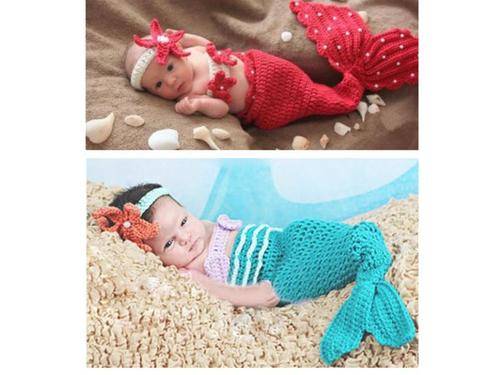 New Adorable The Little Mermaid Knitted Costume Photographic Prop for Newborn Baby
