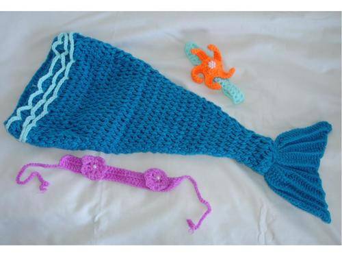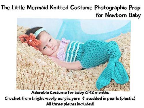 New Adorable The Little Mermaid Knitted Costume Photographic Prop for Newborn Baby