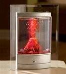 Within the modern durable casing; is a silent-under water volcano that continuously erupts with glowing lava red beads; ejecting upward from the volcanic mountain and falling gently down within the fluid solution. Multi colored lighting provides a stunning glow to this whole scene. This is a magnificently calming experience. The multi colored led lights and the random eruption of lava beads from the mountain make it a stunning scene! ~~~~~~ The lava seems to explode in realistic; but silent way and cascades back down in a gently calming manner. Its especially gorgeous in a dimly lit room.\ ~~~~~~~~~~ Click here for a demo: http://www.fascinations.com/unique-toys-gifts/natures-fire-demo.htm