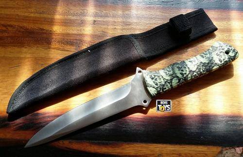 Biohazard Zombie Survival Gear "Lost Soulz" Dagger. Full Tang stainless steel construction with injection moulded green sculls handle. Comes with a black heavy duty nylon belt sheath.
