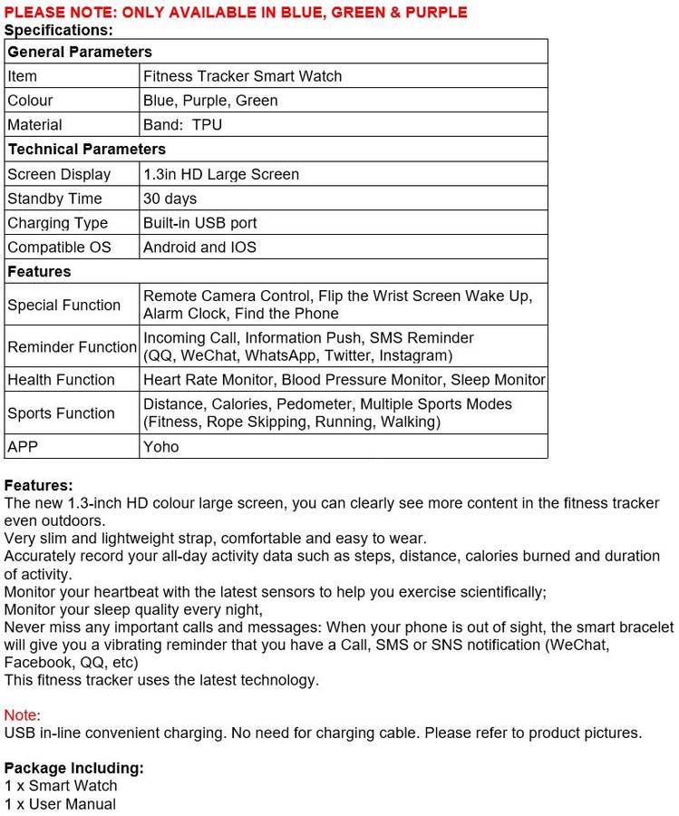 NEW Bluetooth Health Smart Watch - Monitor Heart Rate, Blood Pressure, Blood Oxygen