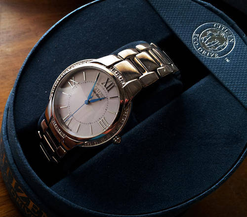 Eco-drive solar power technology never requires a battery change, 180 day power reserve