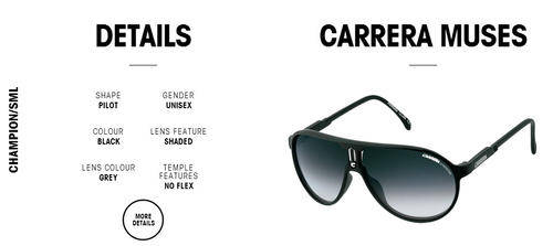 This celebration of a true icon – the Carrera Champion – combines an update of Carrera’s classic aviator frame in different colors. Lighter and more flexible than ever, these sunglasses are ideal for the modern fan.