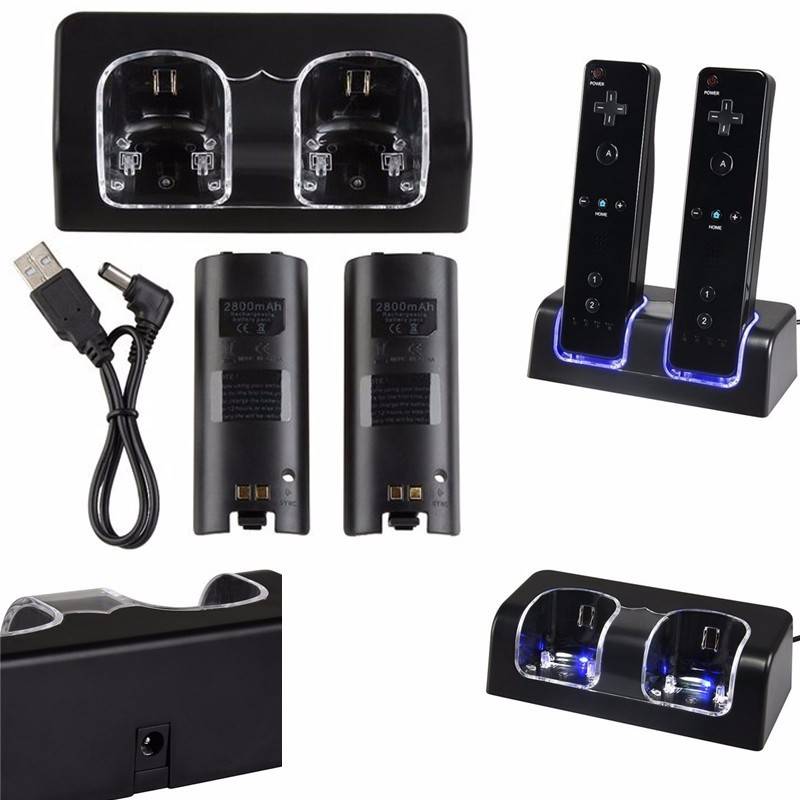 New Charger Dock + 2 x Battery for Nintendo Wii Remote