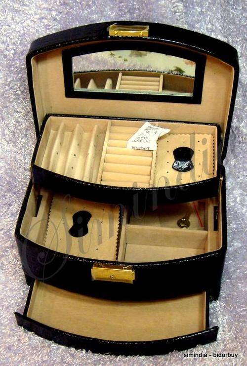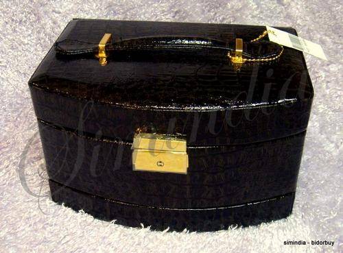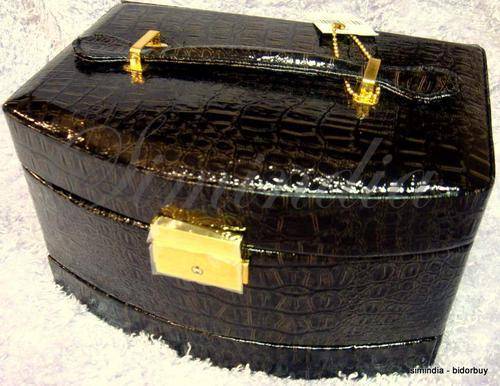 New Christmas Gift Metallic black Color,faux croc leather,quailty lockable jewelry and cosmetic box