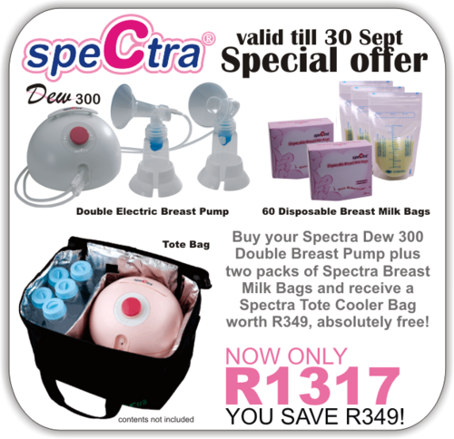The Spectra Dew 300 Double Electric Breast Pump is the solution for the busy, working mom who knows that only she can fulfil her baby’s nutritional and immunological needs. With a maximum suction of 300 mmHg, the Dew 300 is 50% stronger than most other electric breast pumps. Its motor, which has been built to last 1000 hours, is so quiet that you will be able to express milk in your office without disturbing anyone.