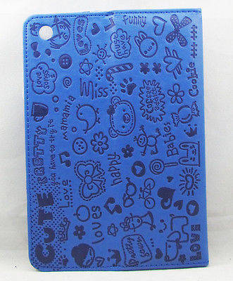 New Cute Magnetic PU Leather Stand Smart Case Cover Shell For iPad mini in Blue