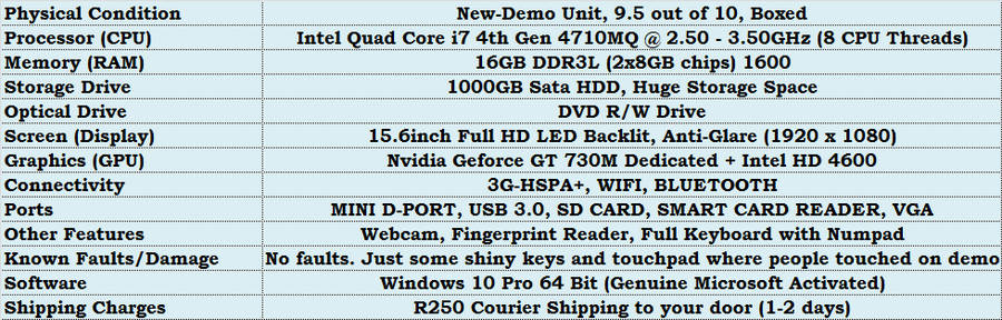 New-Demo Boxed Gaming Spec Thinkpad T540p, Core i7 4th Gen, 1000GB, 16GB Ram, 3G-HSPA,Nvidia,Full HD