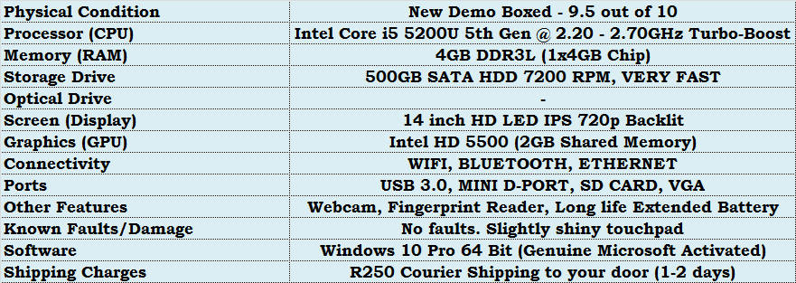 New-Demo Boxed. Thinkpad T450 5th Gen Ultrabook, 500GB, Windows 10 Pro