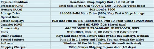 New-Demo. Dell Venue 11 Pro i5 4th Gen Tablet + Dock *R20,000*, 256GB SSD, 8GB Ram, 1080p, 4G-LTE