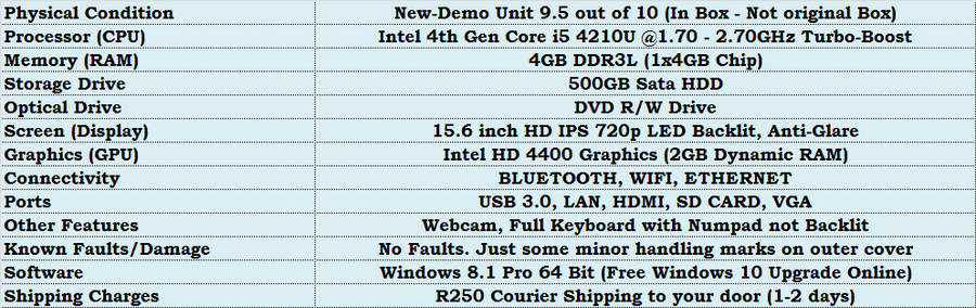 New-Demo Unit, HP 250 G3 4th Gen Core i5 Notebook 15.6inch, 500GB