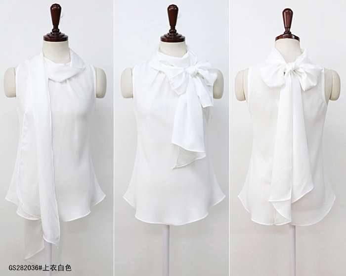 New elegant and romantic bow collar blouse GS282036 White S/M/L