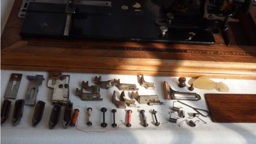 The machine appears to be in very good overall condition with lots of spares and all parts move freely. Not being of the female sex, I have no idea how it sews and, have not attempted that either. I'm not that stupid!!