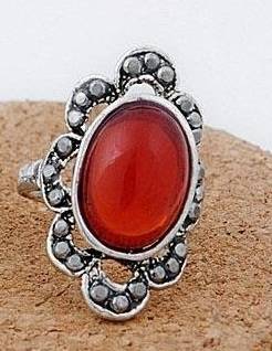New Fashion Vintage Carving Red Gemstone Ring