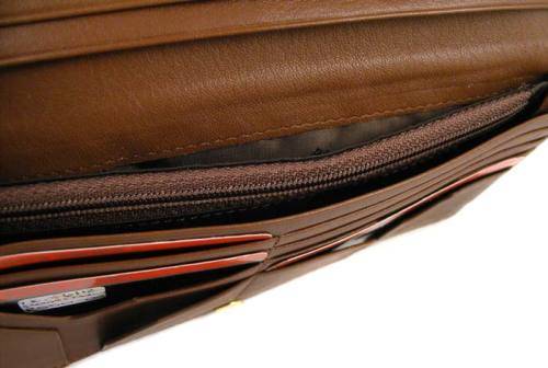 The wallet has ample space for cards, notes and a zippered pocket for change.