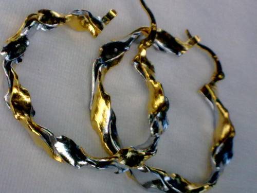 NEW!! GOLD TWO TONE TWIST HOOP EARRINGS