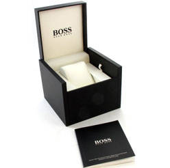 Modern and sophisticated, this HUGO BOSS mens watch features a black dial with black & white colour chrono dials and a black IP bezel.