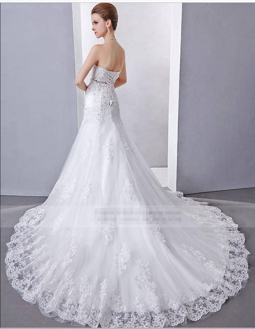 New Lace Crystal Mermaid Long Trailing Wedding Dress Free Shipping