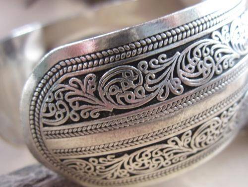 New Ladies chunky Tibetan silver adjustable cuff bangle with intricate detail work. Gorgeous