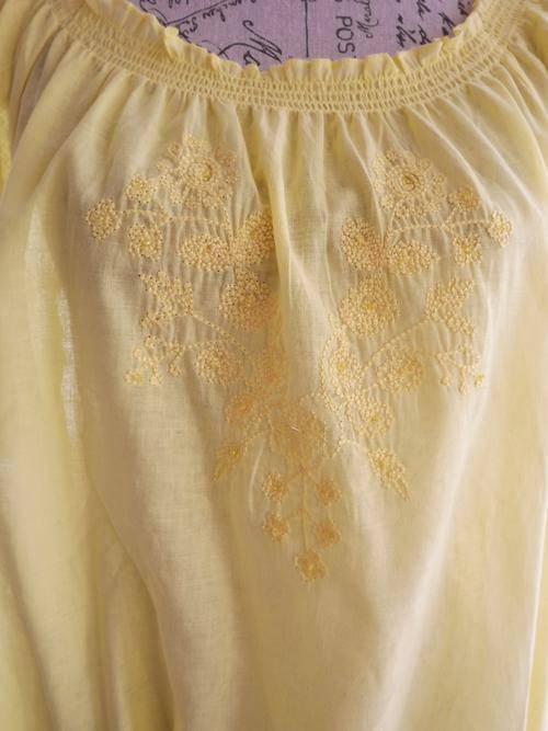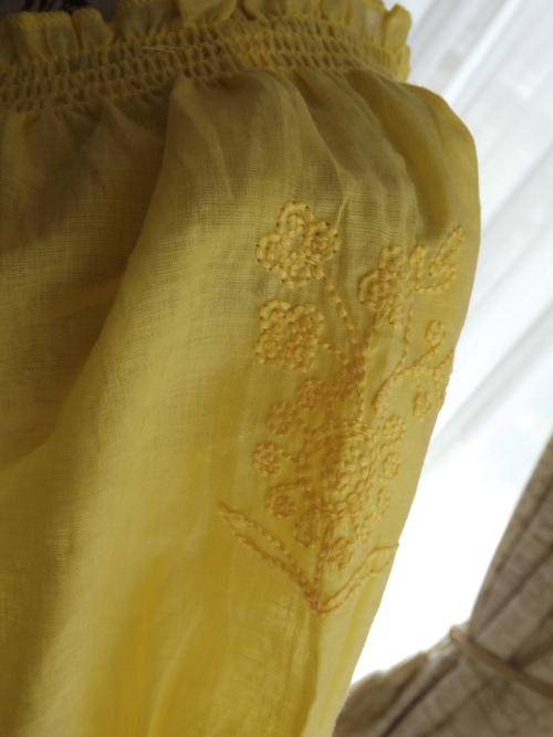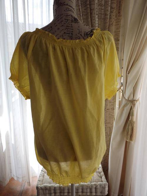 ONE NEW, BOUGHT BUT NEVER WORN LADIES COTTON YELLOW TOP WITH BEAUTIFUL EMBROIDERED FRONT AND SLEEVES. THE SLEEVES ARE ELASTICATED AT THE BOTTOM AND THE WAIST BOTTOM IS ALSO ELASTICATED. PERFECT FOR SPRING AND SUMMER WITH A LIGHT FLOWING SKIRT, SHORTS OR JEANS, THE CHOICE IS YOURS! AS NEW, NEVER WORN (NO TAG)