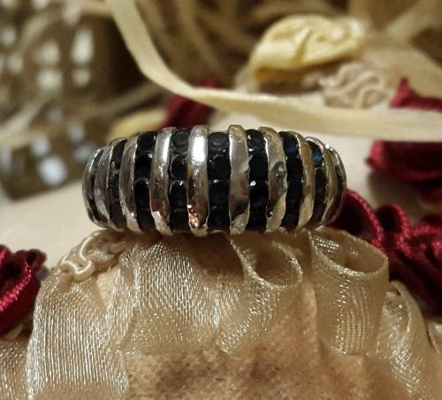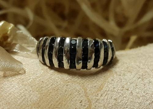 LADIES 925 STERLING SILVER RING WITH BLUE/BLACK TONE STONES