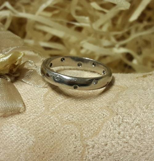 MENS PLATINUM RING / WEDDING BAND WITH 12 DIAMONDS ALONG THE BAND