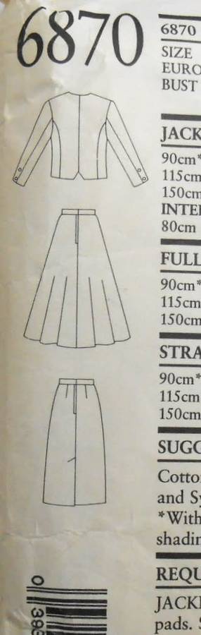 NEW LOOK PATTERNS 6870SHORT JACKET & FULL SKIRT SIZE 8-18 COMPLETE-NO SLIM SKIRT SUPPLIED NEW LOOK PATTERNS 6870SHORT JACKET & FULL SKIRT SIZE 8-18 COMPLETE-NO SLIM SKIRT SUPPLIED