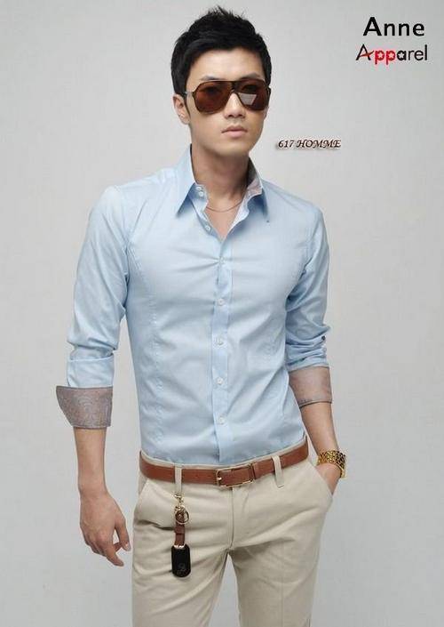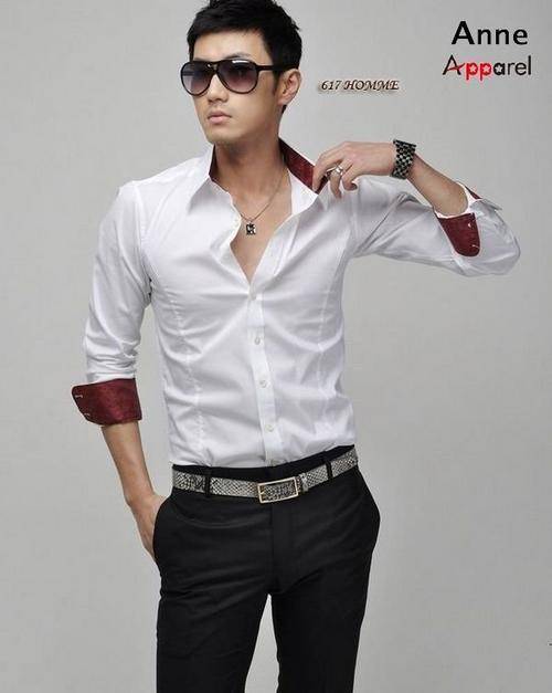 2012 NEW Men's Slim Luxury Silk Sleeve Royal Shirt, long-sleeved shirt