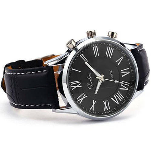 NEW MEN'S ROMAN NUMERAL BLACK DIAL ELEGANT ANALOG QUARTZ DRESS WRIST WATCH