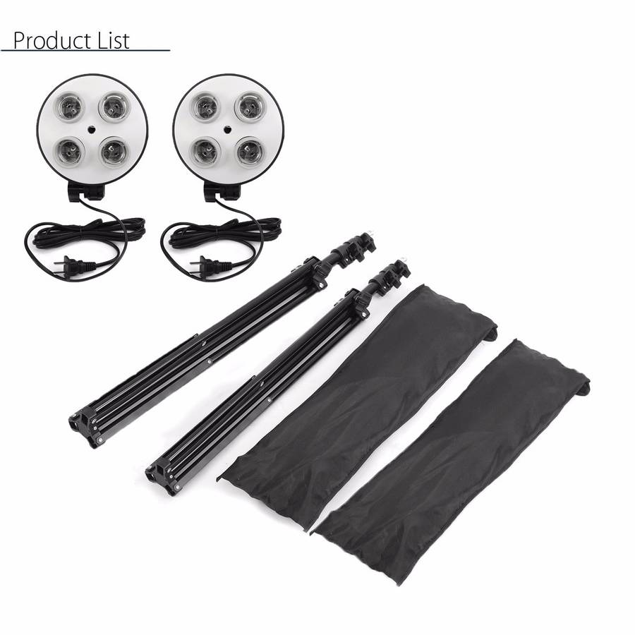 Photo Video Studio Lighting Kit 4-Socket E27 Lamp Holder Softbox Light Stands EU