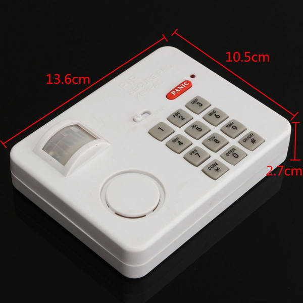 The alarm system also has a "panic" button which allows you to manually sound the alarm if any unwanted visitors try to enter your premises. This can be vital for the elderly or those living alone. Protects your valuables without the need of fussy wiring or power cables. PIR detection range 5m.