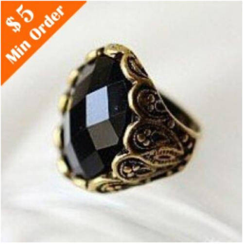 NEW RETRO BLACK GEM STONE ANTIQUE LOOK RING SIZE 17