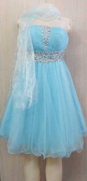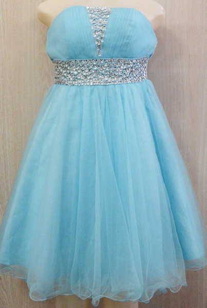 New Rosa light blue evening / cocktail dress with embellishment - Size : M - Length : 80 cm