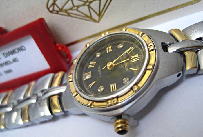 The bracelet and watch head have IPG (gold)to complement the brushed steel look. The time and fast date function are adjusted with the crown, which itself is finished with a real onyx tip. Every Regatta is carefully engraved with it's own unique serial number and preseted in it's own display case. IT IS A LUXURY BRAND.
