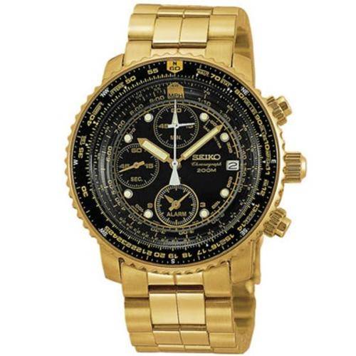 SEIKO PILOT / FLIGHTMASTER GOLD-TONE WATCH WITH BLACK DIAL CHRONOGRAPH, WATER RESISTANT 200M