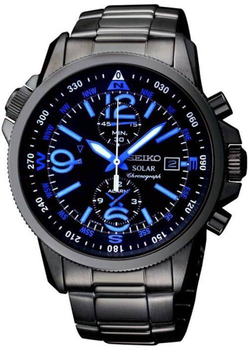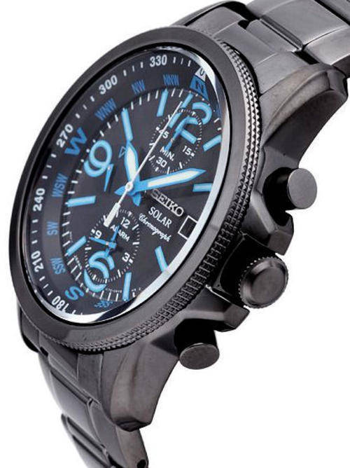 Seiko Solar Alarm Chronograph Black Ion Plated Mens Sport Watch SSC079P1