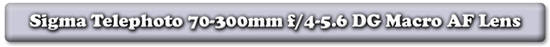 Includes: Sigma Zoom Telephoto 70-300mm f/4-5.6 DG Macro Autofocus Lens, Box, Hood, Caps, Manua.