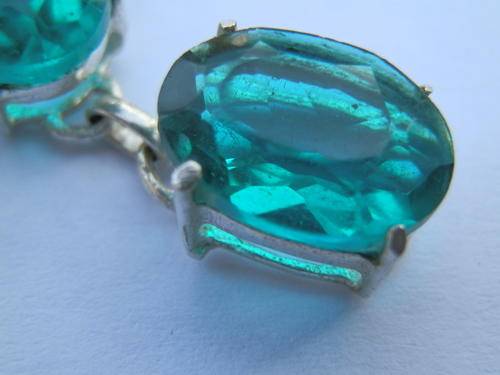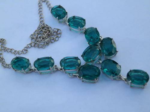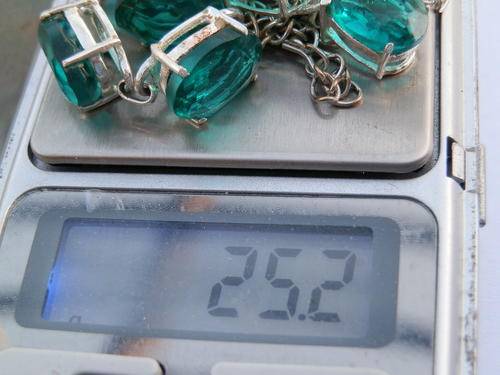 Stunning sterling silver plated Paraiba green quartz necklace, length 45 cm, size of stones 9 x 14 mm and the weight 25.2 g.